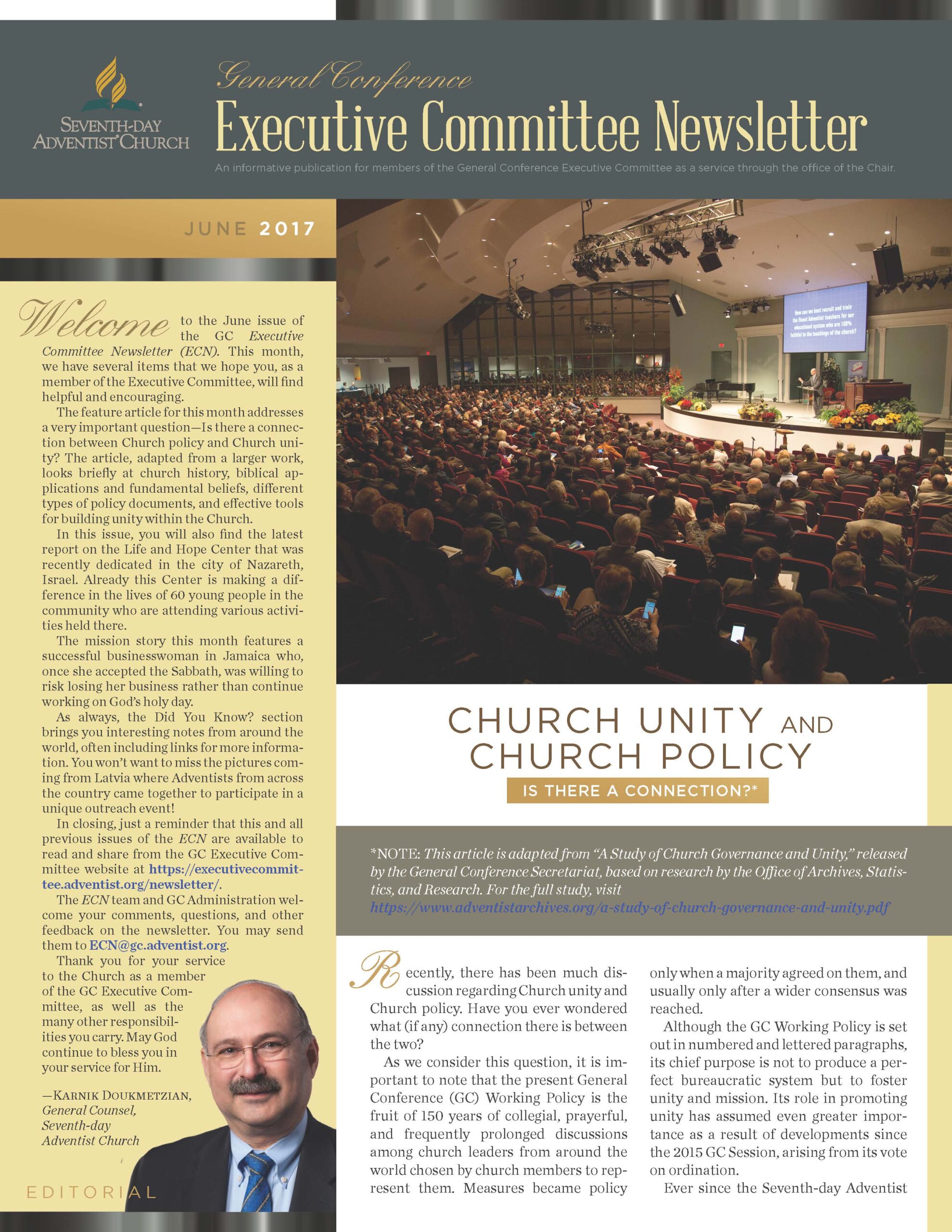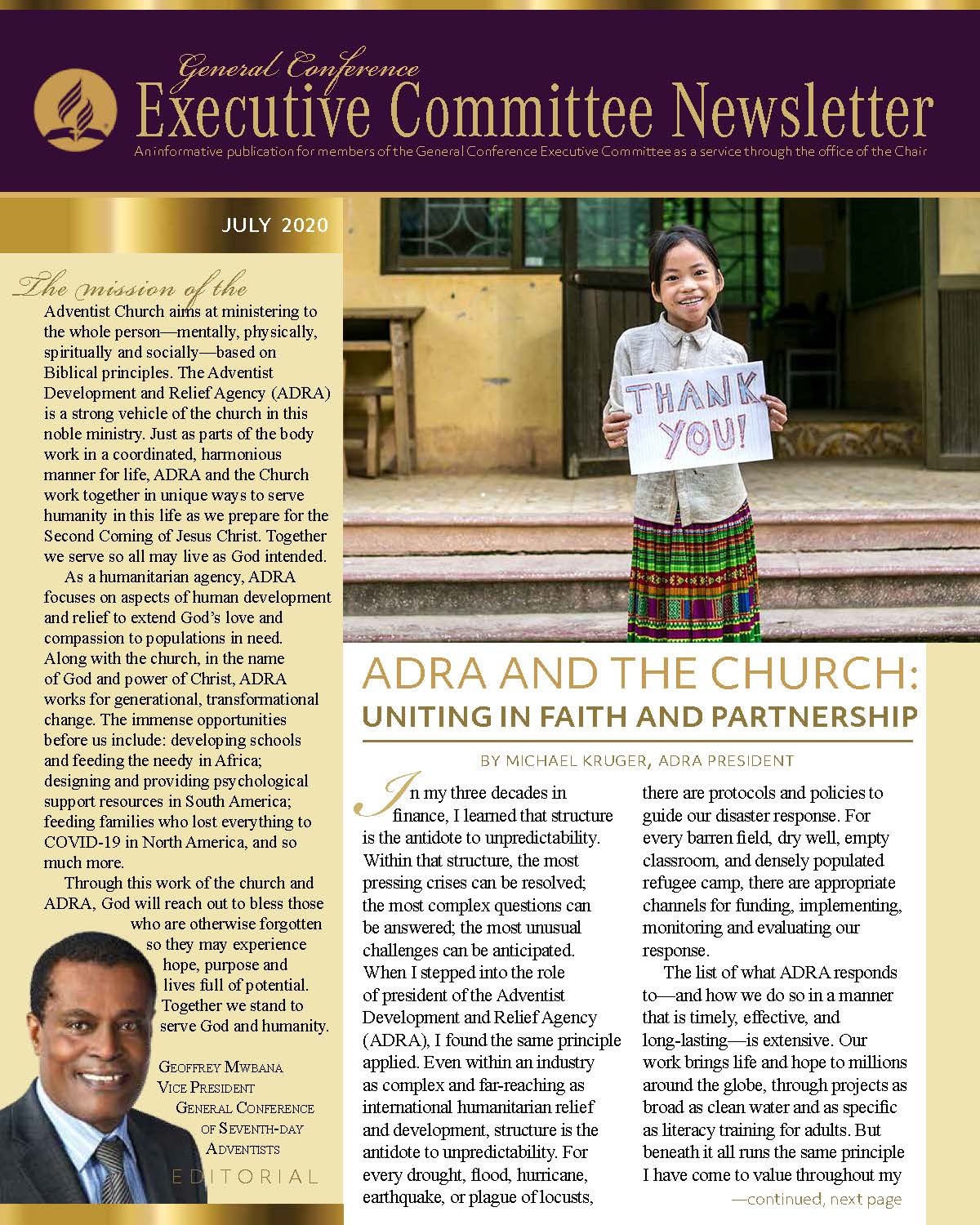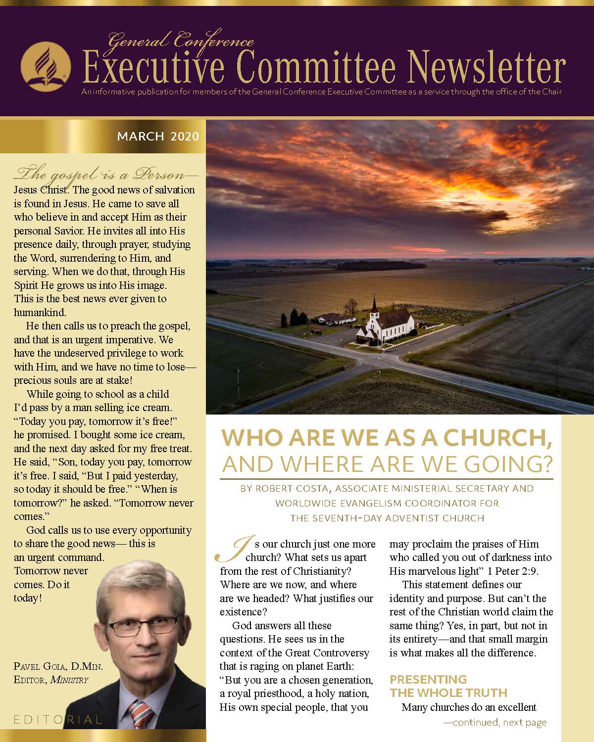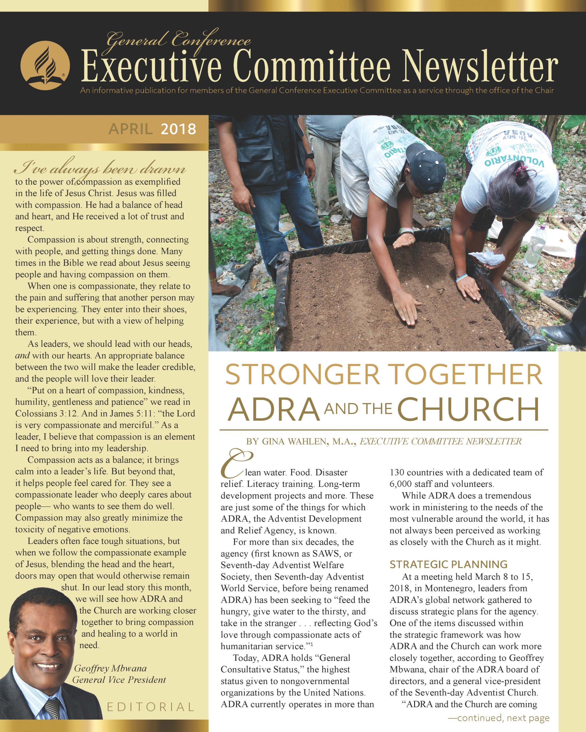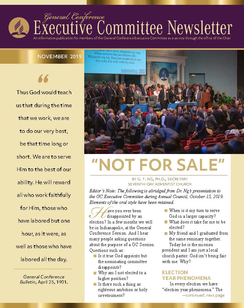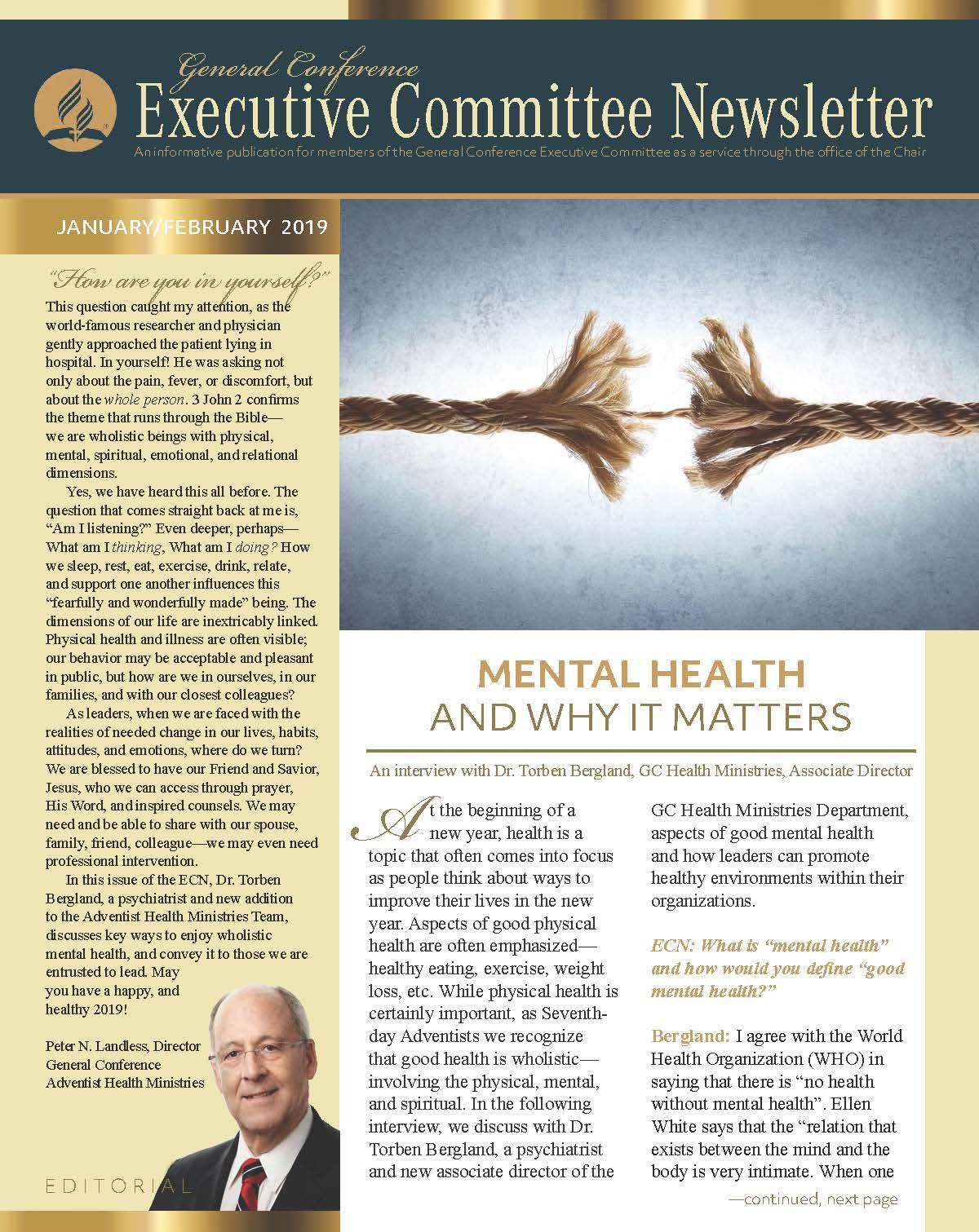 The General Conference Executive Committee Newsletter (ECN) is a publication for members of the General Conference (GC) Executive Committee. It is filled with solid, informative, biblically-based, inspiring content, addressing topics of interest for the worldwide leaders of the Seventh-day Adventist Church. The newsletter, which began in 2017, is currently a quarterly publication and is sent regularly to all members and invitees of the GC Executive Committee. It is also posted regularly on the Executive Committee website. Due to increasing requests, a free subscription to the newsletter is now available to everyone who requests it. If you would like to be put on the ECN mailing list, simply fill out the form on this page. Your name and email address will be protected and will only be used for sending you the ECN.