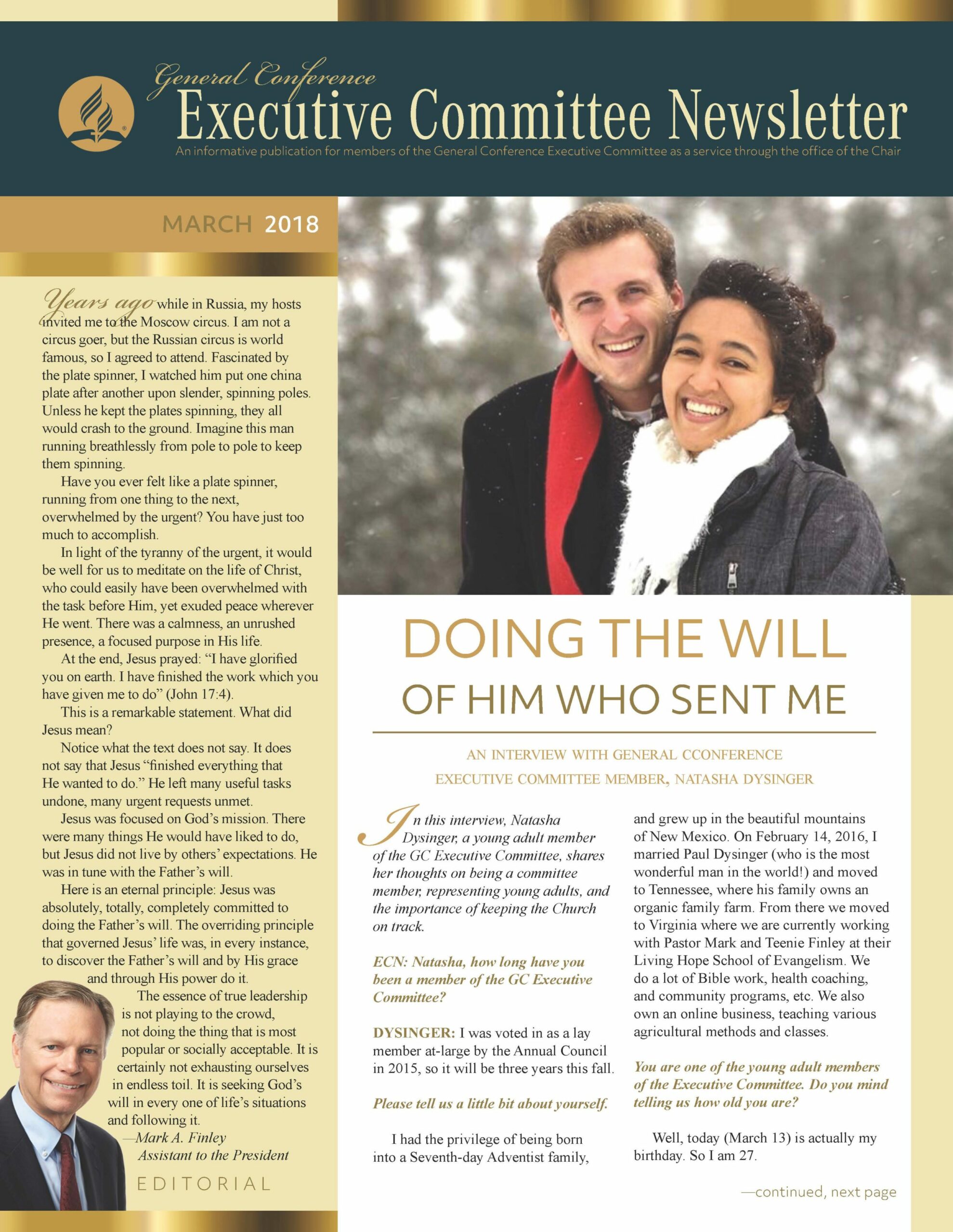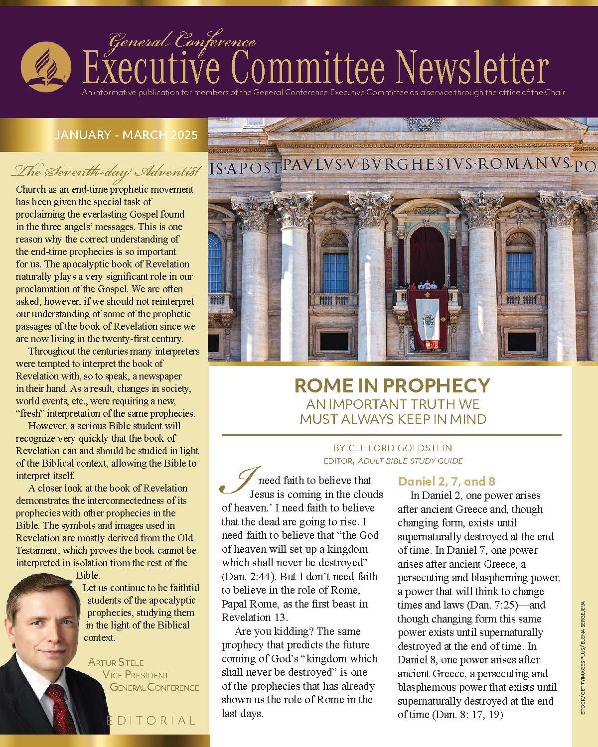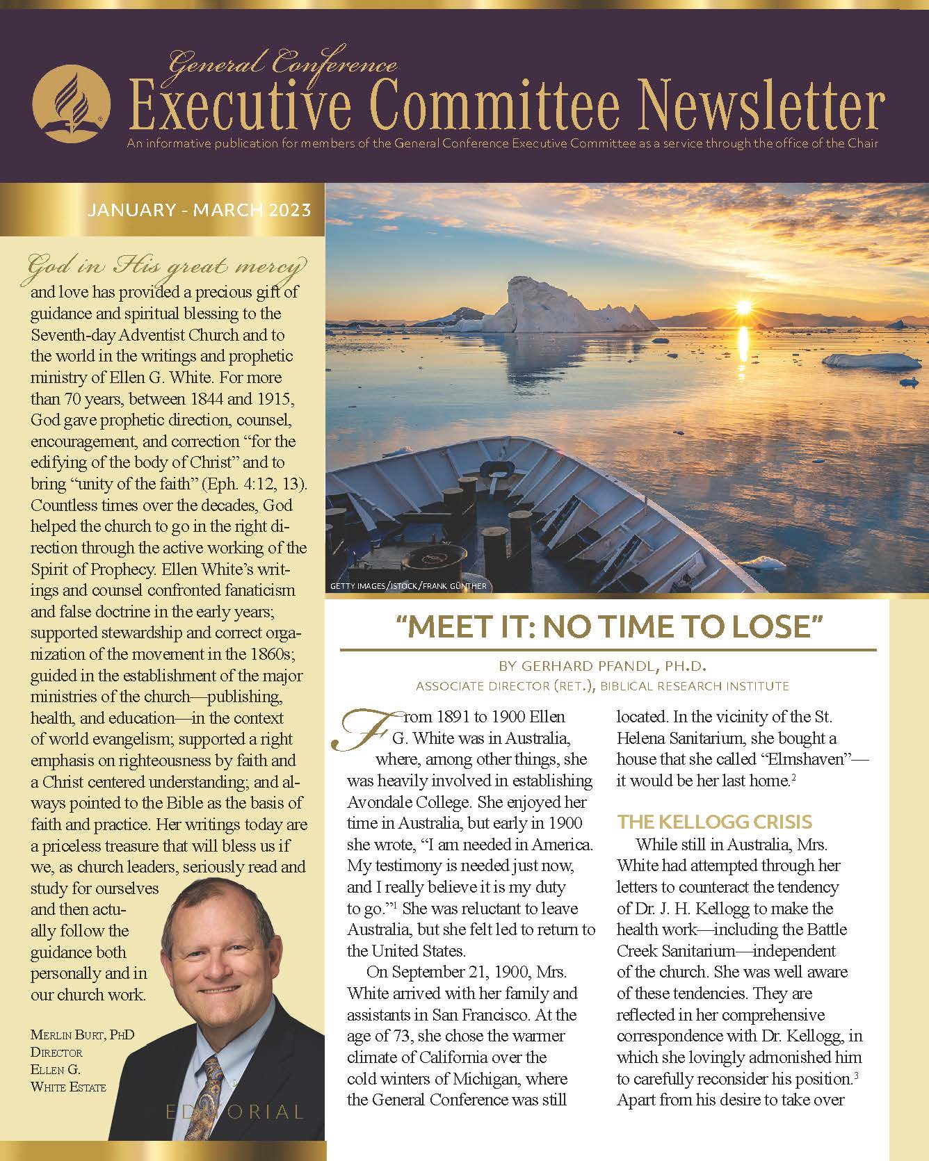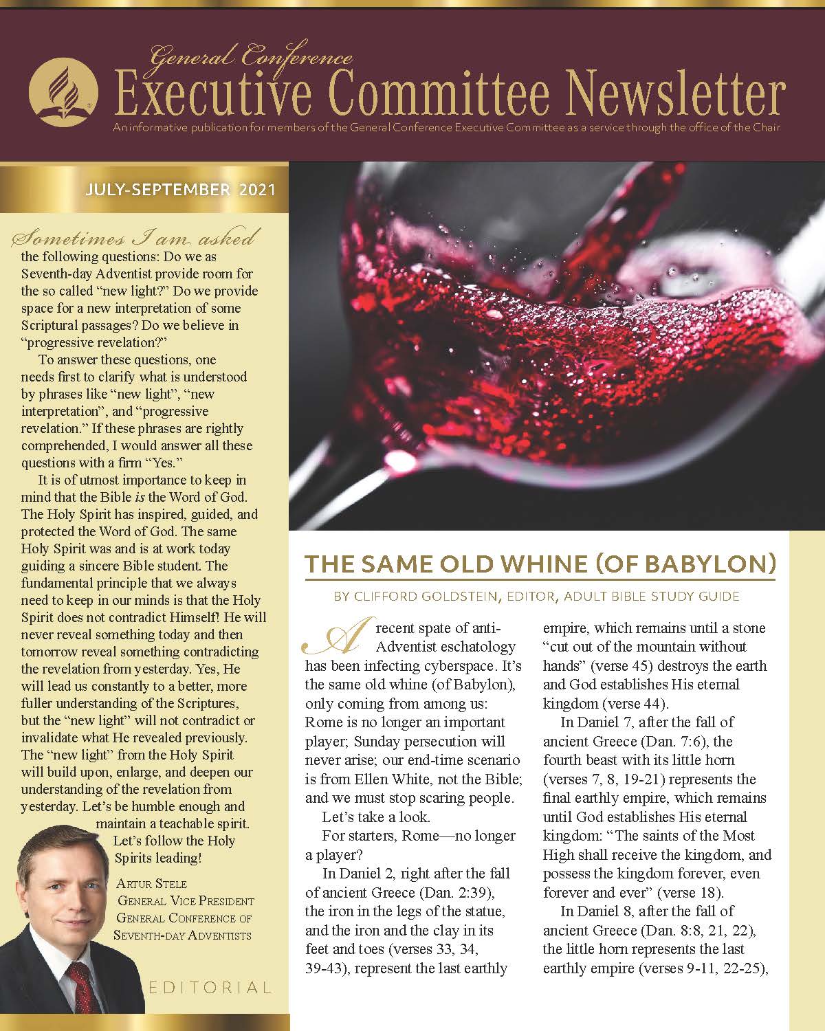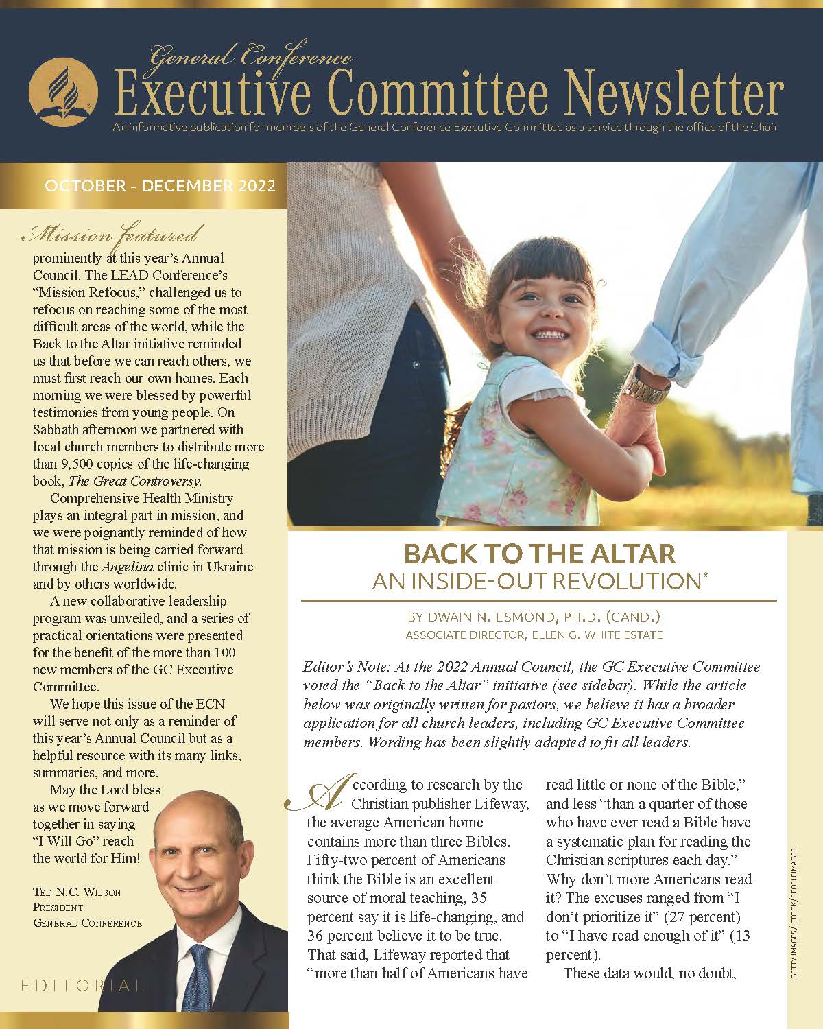 The General Conference Executive Committee Newsletter (ECN) is a publication for members of the General Conference (GC) Executive Committee. It is filled with solid, informative, biblically-based, inspiring content, addressing topics of interest for the worldwide leaders of the Seventh-day Adventist Church. The newsletter, which began in 2017, is currently a quarterly publication and is sent regularly to all members and invitees of the GC Executive Committee. It is also posted regularly on the Executive Committee website. Due to increasing requests, a free subscription to the newsletter is now available to everyone who requests it. If you would like to be put on the ECN mailing list, simply fill out the form on this page. Your name and email address will be protected and will only be used for sending you the ECN.