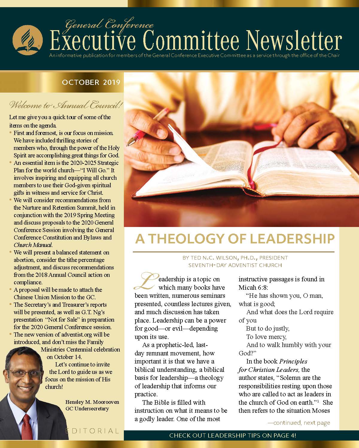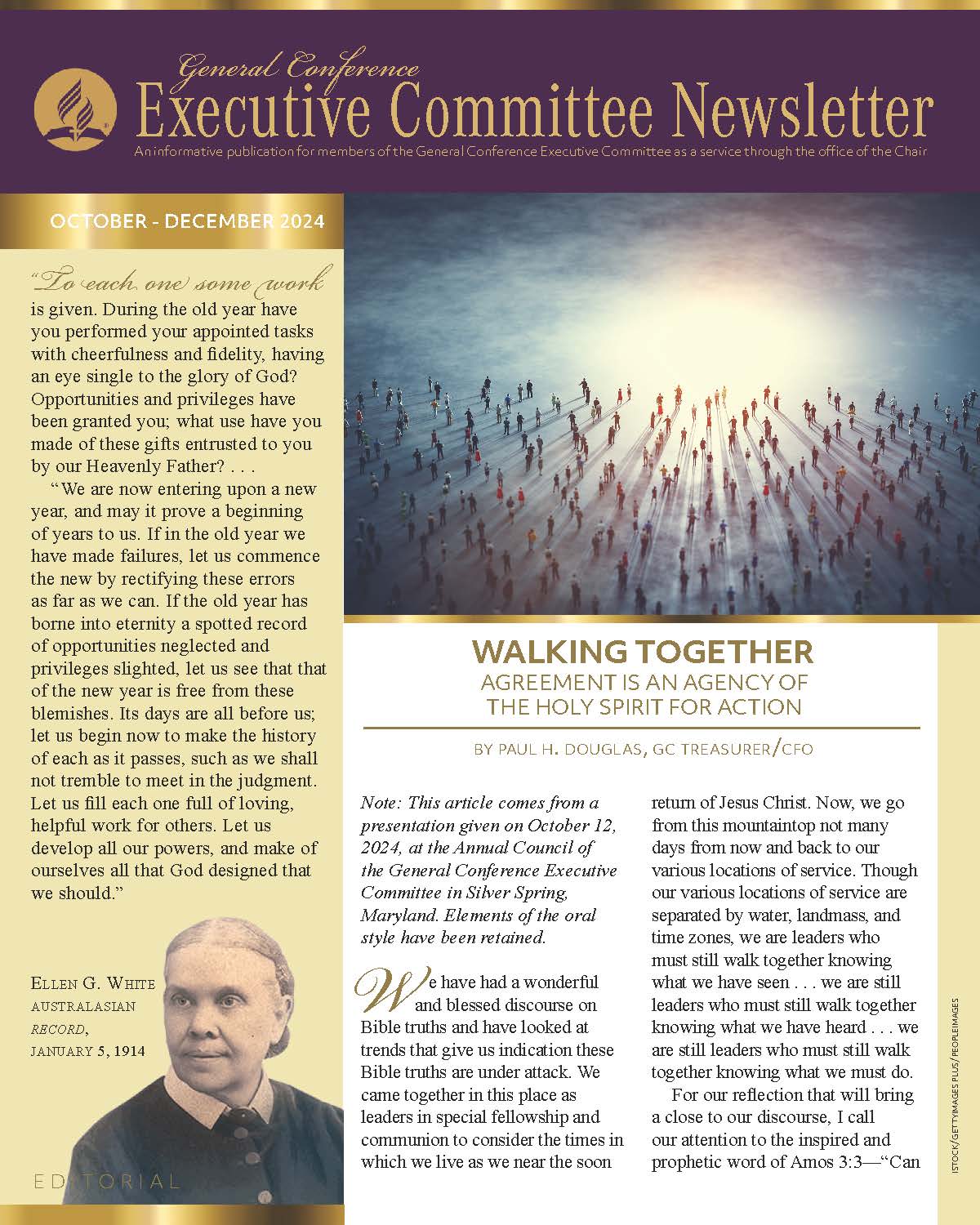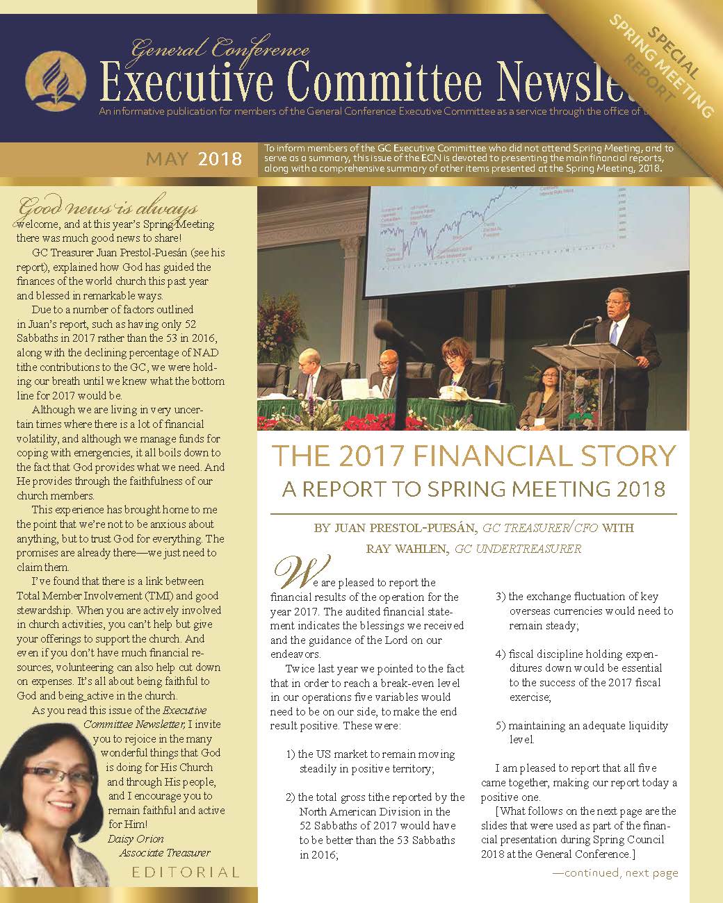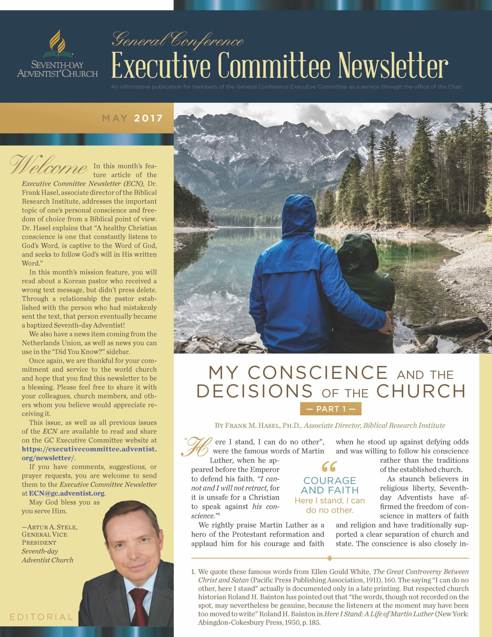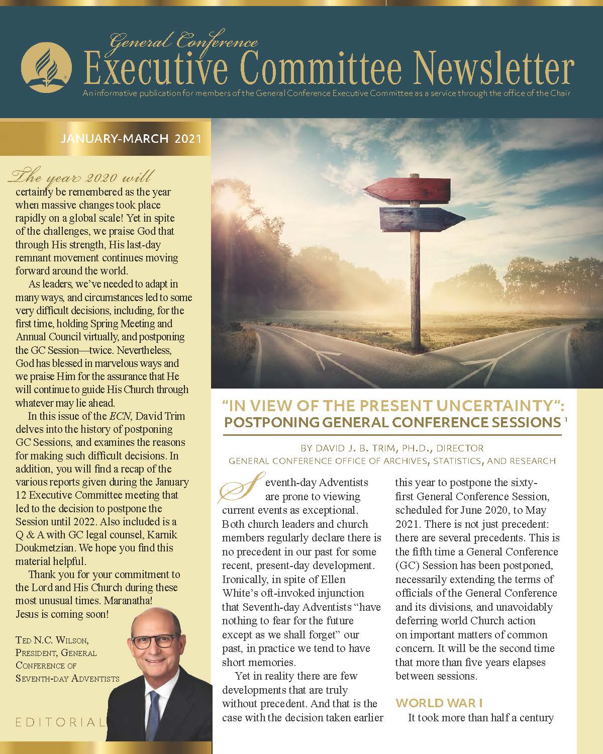 The General Conference Executive Committee Newsletter (ECN) is a publication for members of the General Conference (GC) Executive Committee. It is filled with solid, informative, biblically-based, inspiring content, addressing topics of interest for the worldwide leaders of the Seventh-day Adventist Church. The newsletter, which began in 2017, is currently a quarterly publication and is sent regularly to all members and invitees of the GC Executive Committee. It is also posted regularly on the Executive Committee website. Due to increasing requests, a free subscription to the newsletter is now available to everyone who requests it. If you would like to be put on the ECN mailing list, simply fill out the form on this page. Your name and email address will be protected and will only be used for sending you the ECN.